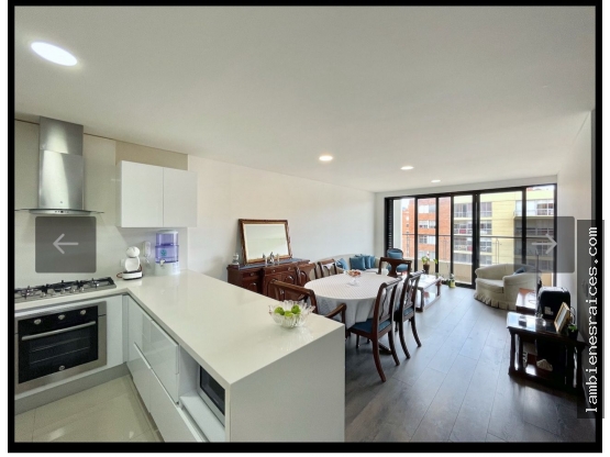 Se vende apartamento en Lagos de Córdoba de 99.4 m², ubicado en piso 9 exterior, estrato 5 y con 5 años de antigüedad. Cuenta con 3 habitaciones, 2 baños, balcón, estudio, sala-comedor, cocina y zona de lavandería. Incluye 2 parqueaderos en línea y depósito. Se entrega con puerta de seguridad y sistema de sonido incorporado. El conjunto ofrece piscina, sauna, turco, gimnasio, salón social, squash y terraza.